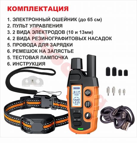 Очень хороший по техническим характеристикам электроошейник, подходит для собак практически любых размеров. Отличается большим радиусом действия, полной водонепроницаемостью и аккумулятором повышенной емкости. Ошейником управляет хозяин, с помощью пульта. Предназначена для удаленного контроля за поведением и действиями собаки, а также отработки команд. Очень эффективна для отработки команды "Ко мне", отучения от подбора с земли, борьбы с агрессией и прочими дефектами поведения.