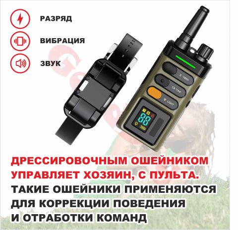 Один из лучших, по техническим характеристикам, электроошейников, подходит для собак практически любых размеров (от 8 до 100 кг), с любой длинной шерсти. Отличается большим радиусом действия, полной водонепроницаемостью и аккумулятором повышенной емкости. Отличные дизайн, качество сборки, материалы и удобство управления. Ошейником управляет хозяин, с помощью пульта. Предназначена для удаленного контроля за поведением и действиями собаки, а также отработки команд. Очень эффективна для отработки команды "Ко мне", отучения от подбора с земли, борьбы с агрессией и прочими дефектами поведения.